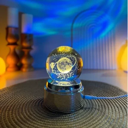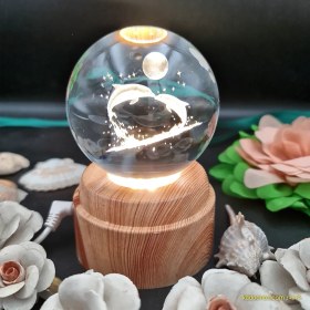 چراغ شب خواب و گوی کریستال سه بعدی بزرگ چرخان با قطر ۸ سانت با طرح دولفین ها